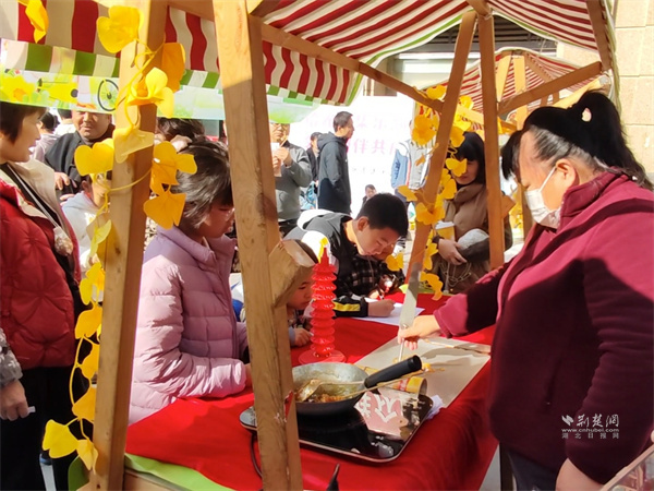 畫糖畫攤位前圍滿了好奇的小朋友,民俗老師手持糖勺,在案臺(tái)上揮灑自如,轉(zhuǎn)眼就勾勒出各類圖案,引得孩子們陣陣驚嘆。在糖葫蘆攤位,晶瑩剔透的糖殼包裹著酸甜的山楂,咬上一口,滿是幸福的味道。