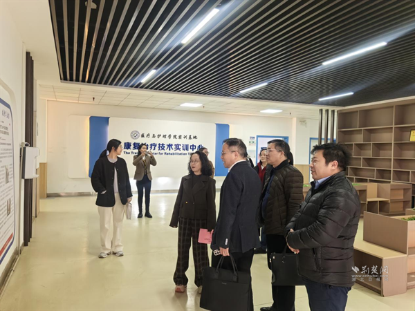 劉連忠院長、高海兵主席一行參觀醫(yī)護(hù)學(xué)院康復(fù)治療技術(shù)實(shí)訓(xùn)中心。 通訊員供圖