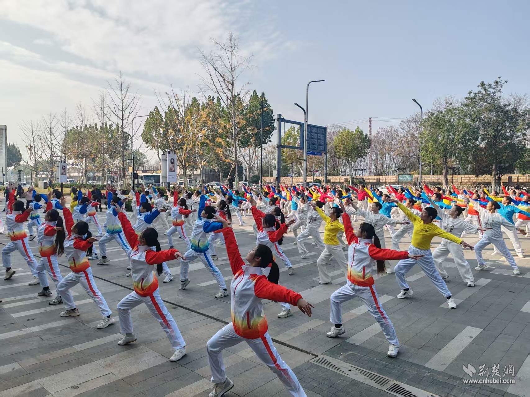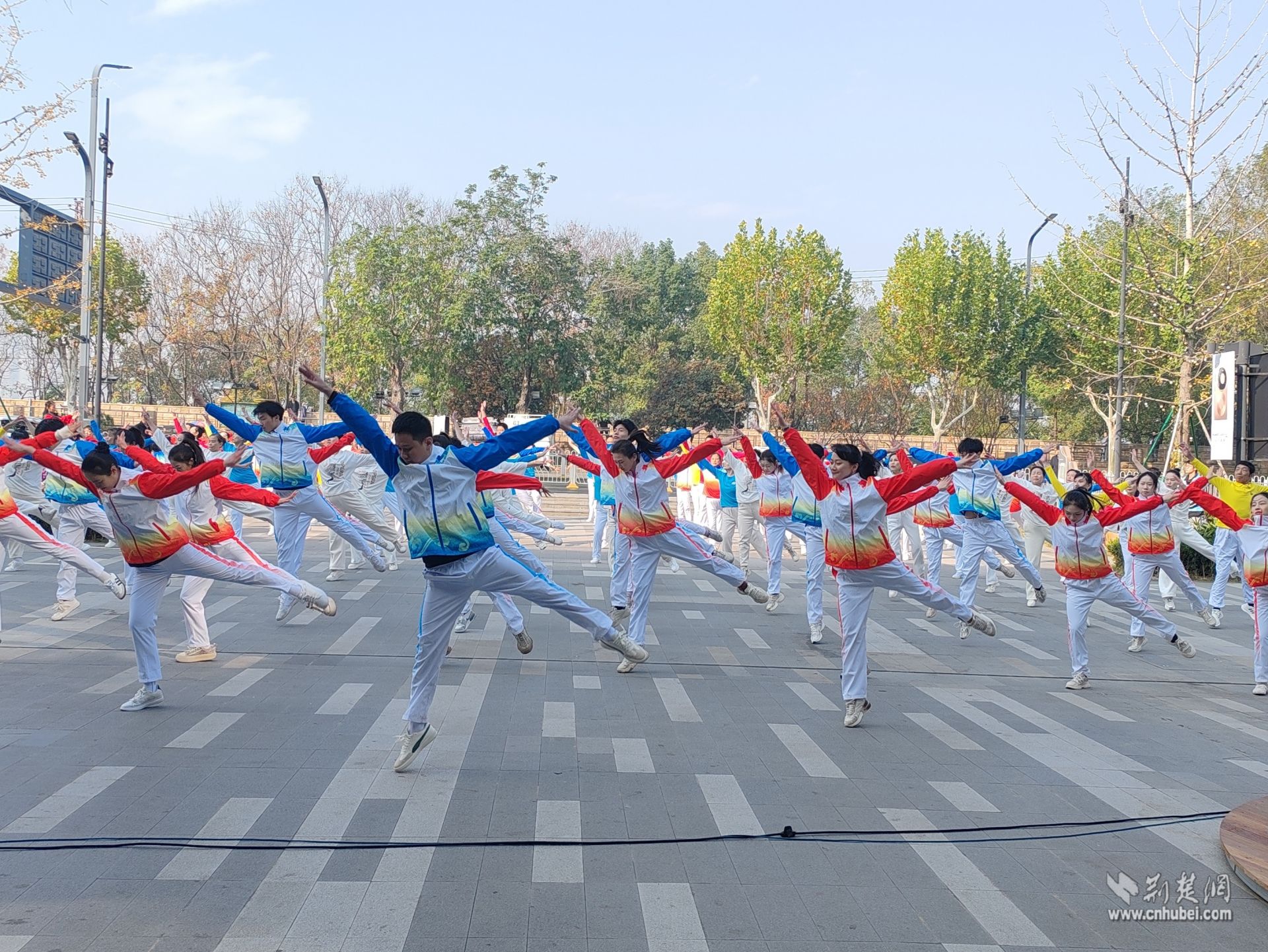 伴隨著氣勢恢宏的《領(lǐng)航》旋律響起,由武昌黃鶴之星文化驛站成員、轄區(qū)文藝團隊及武漢音樂學院學生組成的140人表演隊伍翩然起舞。舞者們身著亮麗服裝,步伐整齊有力,動作舒展昂揚,如一面面流動的旗幟,在冬日的陽光下?lián)]灑著自信與熱情。在武漢歌舞劇院許峰老師的現(xiàn)場帶領(lǐng)下,整場表演張弛有度、情感充沛,生動詮釋了新時代的朝氣與力量,贏得了在場觀眾陣陣掌聲與喝彩。