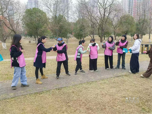 中午時分,大家齊聚武昌江灘?;顒右潦?,眾人圍成圓圈,在主持人引導下,伴著歡快的音樂進行破冰互動。隨后,眾人以抽簽的方式劃分為三組,三項趣味游戲輪番上演。