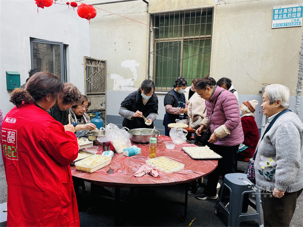 活動(dòng)最暖環(huán)節(jié),當(dāng)屬跨小區(qū)的鄰里美食互動(dòng)。工程營小區(qū)鄰里客廳熬制的排骨藕湯香氣撲鼻,九中宿舍小區(qū)鄰里客廳內(nèi),居民正合力包制團(tuán)圓餃子。兩小區(qū)居民齊聚一堂,熱湯配餃子,一場暖心家宴在嘮家常的溫馨氛圍中開席,詮釋了“左鄰右舍齊歡聚,共筑復(fù)興時(shí)光里”的活動(dòng)主題。
