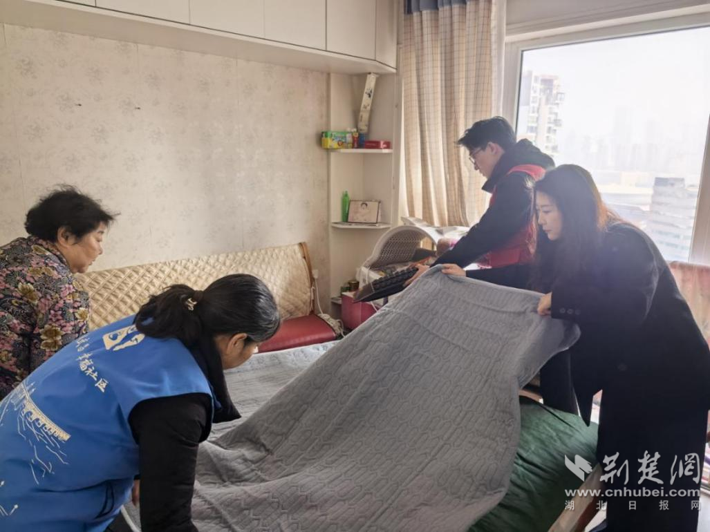 為老人鋪設(shè)水暖毯。 通訊員供圖