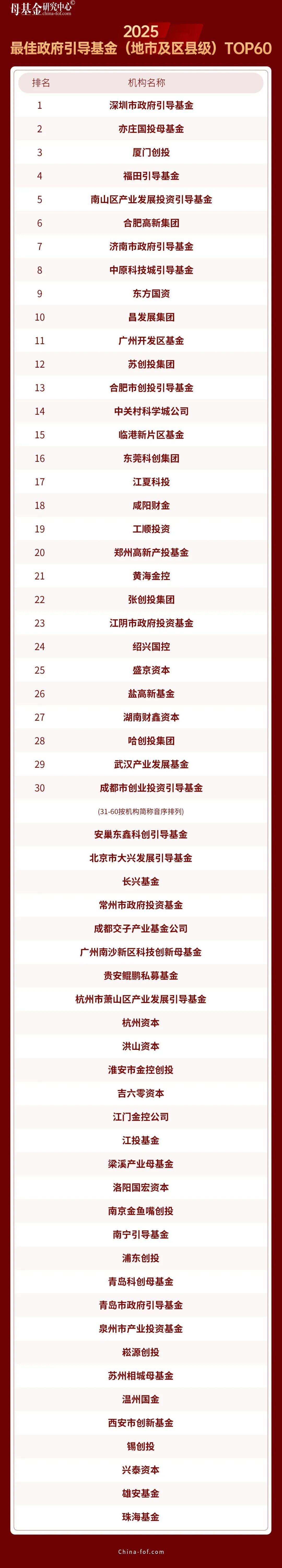 12月29日,母基金研究中心發(fā)布2025年度榜單,江夏科投集團(tuán)獲評(píng)“2025最佳政府引導(dǎo)基金(地市及區(qū)縣)TOP30”第17名、科投集團(tuán)董事長韓偉榮膺“2025最佳母基金投資人TOP40”稱號(hào),連續(xù)兩年榮登榜單是業(yè)內(nèi)權(quán)威機(jī)構(gòu)對(duì)江夏科投集團(tuán)作為科技創(chuàng)新投資平臺(tái)投資能力、管理能力的認(rèn)可,更標(biāo)志著其在區(qū)域科技創(chuàng)新資源整合、產(chǎn)業(yè)培育布局等方面的能力已躋身全國地市及區(qū)縣級(jí)引導(dǎo)基金第一梯隊(duì),成為地方政府引導(dǎo)基金助力區(qū)域經(jīng)濟(jì)高質(zhì)量發(fā)展的標(biāo)桿樣本。