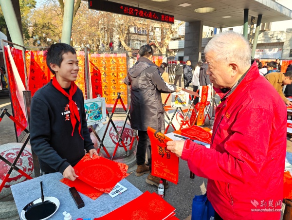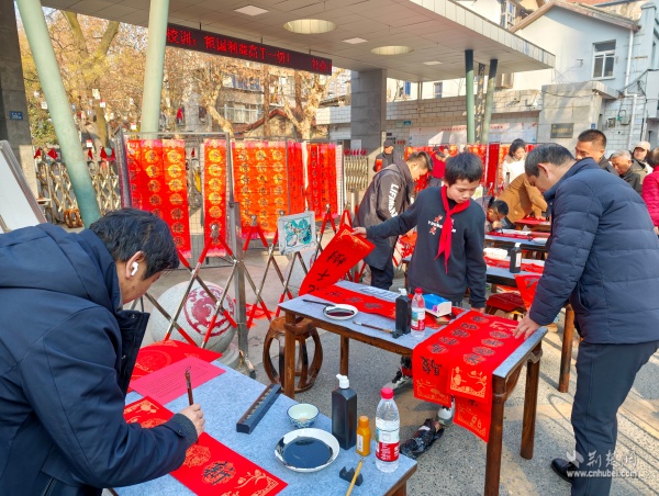 荊楚網(wǎng)(湖北日報網(wǎng))訊(通訊員 胡雅菲 許小玲)為弘揚(yáng)中華優(yōu)秀傳統(tǒng)文化,凝聚區(qū)域共建合力,助力武昌區(qū)創(chuàng)建“中國書法之鄉(xiāng)”,1月15日上午,由湖北省教育學(xué)會書法教育專業(yè)委員會主辦、武昌區(qū)黃鶴樓街道花堤社區(qū)聯(lián)合共建單位湖北省武昌實驗小學(xué)承辦的“社區(qū)學(xué)校心連心,喜送福聯(lián)迎新春”公益活動,在實驗小學(xué)門口拉開帷幕。