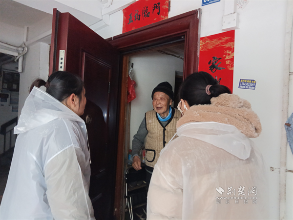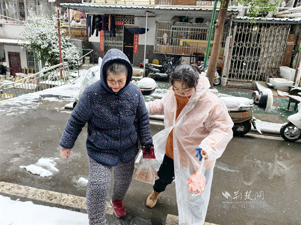 降雪路滑,糧道街道各社區(qū)心系轄區(qū)內(nèi)空巢老人、孤寡老人和殘疾人等特殊群體家庭,迅速組織網(wǎng)格員開展“敲門行動”?;▓@山社區(qū)網(wǎng)格員在上門看望獨居老人途中,偶遇特扶對象鄧奶奶正小心翼翼地在雪中前行。“鄧奶奶,您慢點走,這雪剛下,路面有點滑,我扶著您。”網(wǎng)格員立即上前攙扶,邁著穩(wěn)健的步伐將其護送回家。進屋后,她反復(fù)叮囑老人:“雪天盡量減少外出,若有采購需求隨時聯(lián)系我們代買,生活上遇到任何困難,第一時間向社區(qū)反映?!币痪渚涠冢宦暵曣P(guān)懷,讓寒冷的雪天暖意融融。