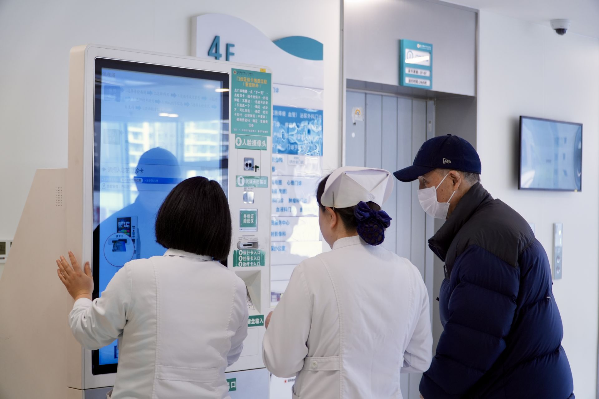 進(jìn)入門診大廳,導(dǎo)診臺(tái)、自助掛號機(jī)分布在顯眼位置。記者注意到,多名醫(yī)護(hù)人員和志愿者在大廳內(nèi)來回巡查,看到行動(dòng)不便的老人,便主動(dòng)上前詢問,幫忙完成掛號等流程,就診秩序平穩(wěn)有序。
