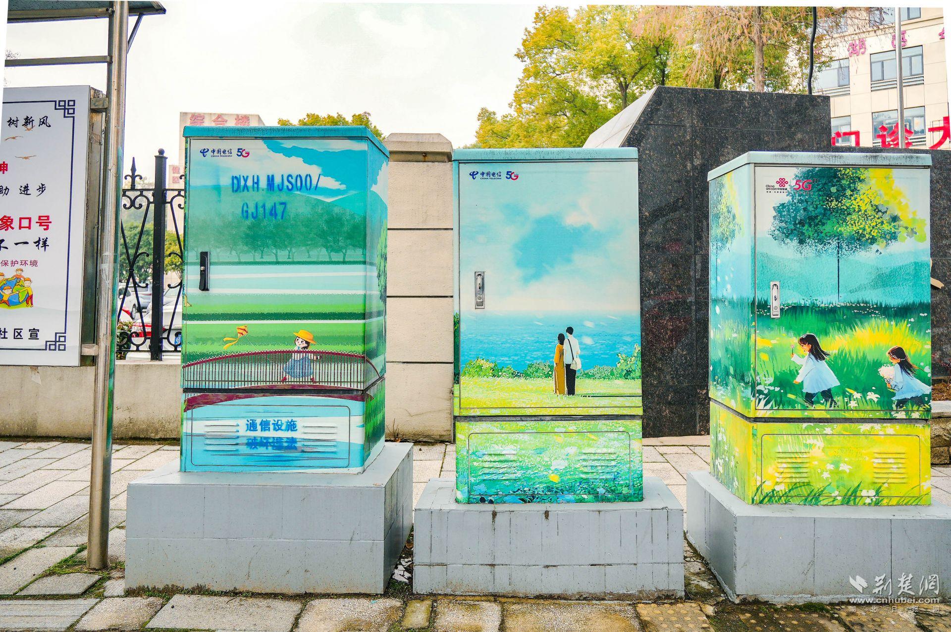 此外,吳中街兩側50多個環(huán)網(wǎng)箱柜,結合東西湖文化特色,設計成“一箱一景”的街頭彩繪小品,成了點綴城市的小風景。