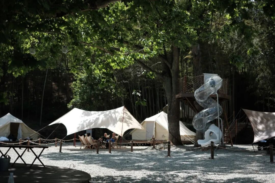 自帶空調(diào)的豪華帳篷,甩手就能入??;還可以體驗(yàn)多種戶外休閑項(xiàng)目,如射箭、滑滑梯、秋千、垂釣溯溪等,還有不定期音樂會(huì)、露天電影等各類主題活動(dòng)。