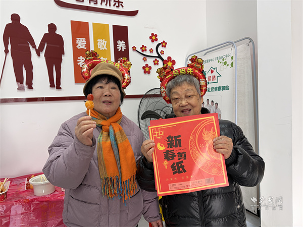“金曲聯(lián)唱”環(huán)節(jié),長(zhǎng)者們齊唱《恭喜恭喜》《新年好》等經(jīng)典曲目,熟悉的旋律勾起共同記憶,現(xiàn)場(chǎng)歡聲笑語(yǔ)不斷?!肮蚕砟旮!杯h(huán)節(jié)將氣氛推向高潮,長(zhǎng)者們精心創(chuàng)作的窗花和春聯(lián)作品引得陣陣贊嘆。大家互道新春祝福,拍攝“全家?!贝蠛险眨ǜ駡F(tuán)圓溫暖瞬間。