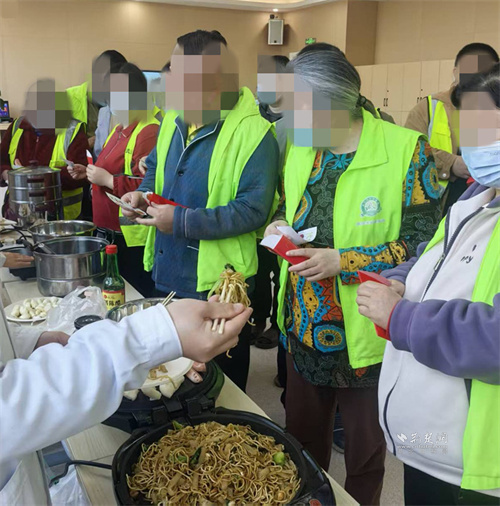 園藝治療師胡露蕓為康復(fù)患者發(fā)放新春紅包,紅包內(nèi)的康復(fù)代幣,是對(duì)患者一年來康復(fù)努力的肯定。代幣美食街同步開市,現(xiàn)場(chǎng)設(shè)置餃子、炒面、烤糍粑、烤腸及飲品等攤位,醫(yī)護(hù)人員協(xié)助完成食物制作與分裝,康復(fù)患者持代幣有序兌換美食,在互動(dòng)過程中鍛煉社交表達(dá)與自主決策能力。