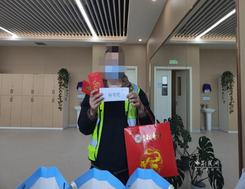 康復(fù)患者展示特等獎(jiǎng)新春禮包。 通訊員供圖