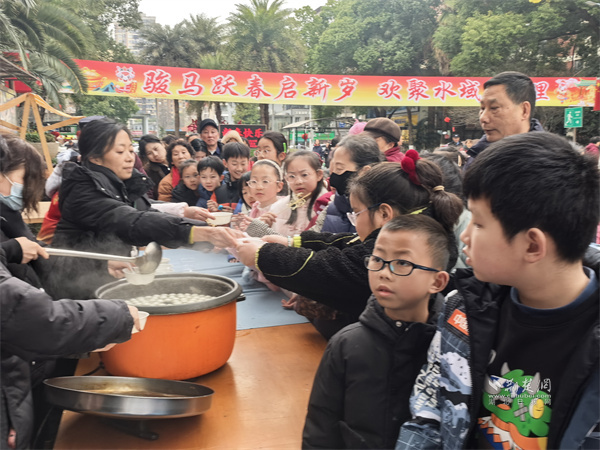 “民俗雅趣”區(qū)域里,激昂的舞龍表演率先拉開序幕,為新春送上風調雨順的美好寓意。數(shù)百條燈謎懸掛現(xiàn)場,涵蓋成語典故、詩詞歌賦、生活常識等內容,居民競猜解謎,贏取精美小禮;現(xiàn)場煮制的元宵熱氣騰騰,工作人員逐一分發(fā),一碗甜糯元宵暖胃又暖心。特邀的糖人師傅現(xiàn)場展藝,糖稀經捏、拉、吹、轉,化作栩栩如生的造型,讓居民在甜蜜中感受民間非遺魅力?;顒蝇F(xiàn)場還同步設置家電國補政策宣傳點,工作人員細致解讀購置補貼政策,把惠民福利送到居民家門口。