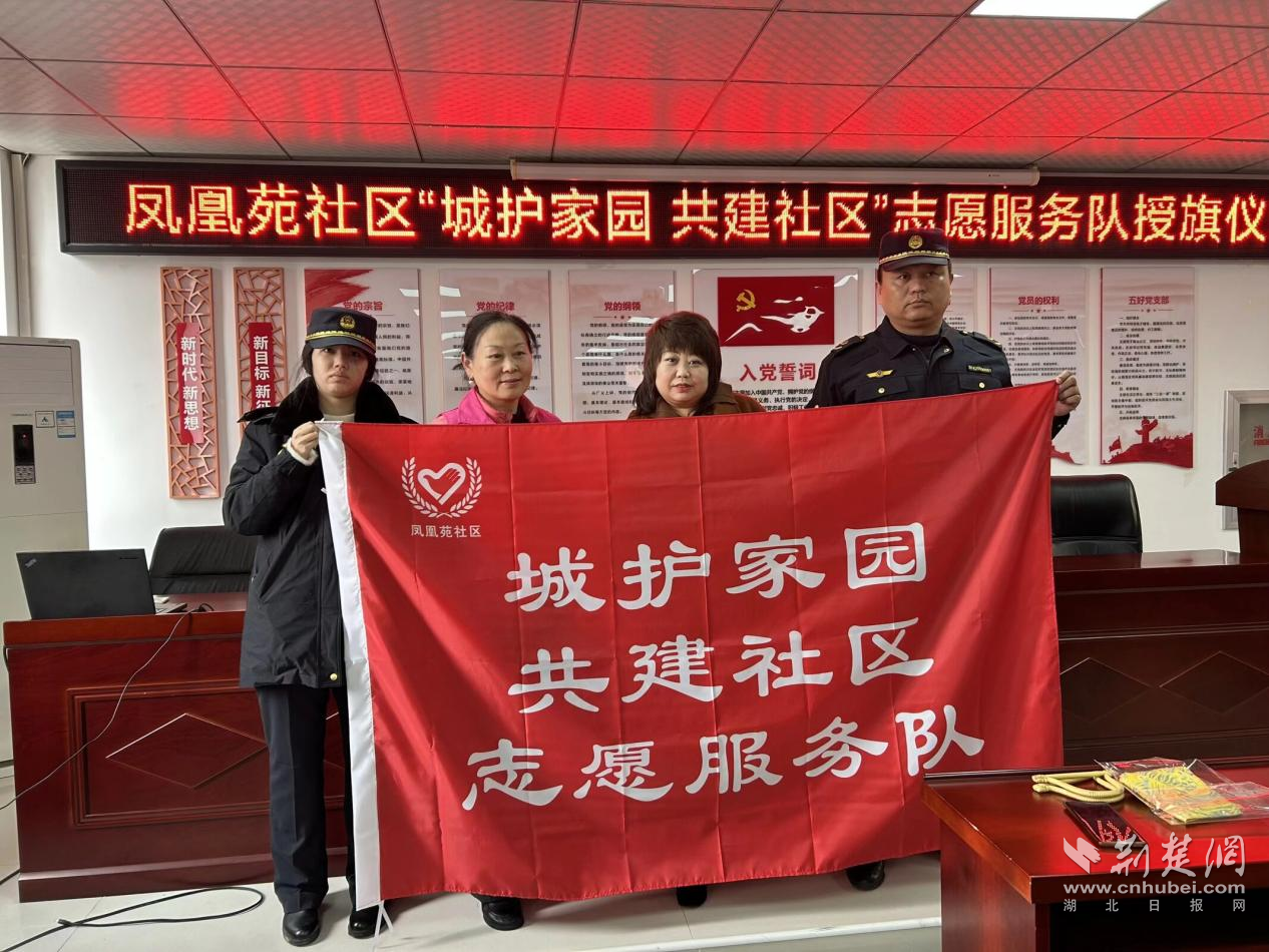 現場為“城護家園 共建社區(qū)”志愿服務隊授旗。通訊員供圖