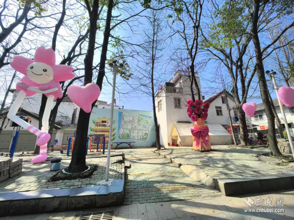 荊楚網(wǎng)(湖北日報網(wǎng))訊(通訊員 周俊芳 周佳穎)在武昌區(qū)黃鶴樓街道西廠口社區(qū)后宰門,一只巨型櫻花人偶?xì)饽!白痹谙锟?,憨態(tài)可掬;抬眼望去,粉色愛心懸掛裝置隨風(fēng)輕搖,與錯落有致的花箱綠植、墻上的黃鶴樓手繪、街區(qū)地圖墻繪交織成趣。跑者未至,春意已滿巷。這是社區(qū)為迎接2026年武漢馬拉松賽事精心布置的“見面禮”。