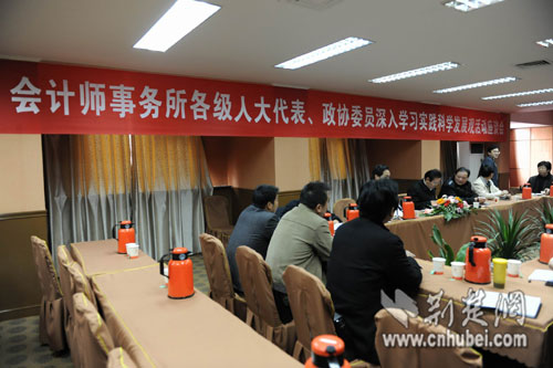 11月14日下午,省注冊會(huì)計(jì)師行業(yè)黨委在武昌財(cái)苑大廈召開了全省注冊會(huì)計(jì)師行業(yè)各級人大代表、政協(xié)委員深入學(xué)習(xí)實(shí)踐科學(xué)發(fā)展觀活動(dòng)座談會(huì)。來自全省各地的16位各級人大代表、政協(xié)委員齊聚一堂,為深入學(xué)習(xí)實(shí)踐科學(xué)發(fā)展觀活動(dòng)建言獻(xiàn)策,回顧二十年來注冊會(huì)計(jì)師行業(yè)黨建工作的發(fā)展歷程,展望會(huì)計(jì)師事務(wù)所行業(yè)的美好未來。