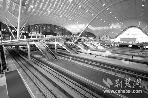 荊楚網(wǎng)消息 (楚天金報(bào)記者譚新杰 通訊員吳志華) 日前,武廣客專北端的起點(diǎn)站——武漢火車站已正式“掛牌”。自從2006年9月開工以來,這座飄逸的“鋼鐵巨鵬”,便淹沒在鏗鏘的建設(shè)聲中,一般人也很難進(jìn)入站內(nèi)一看究竟,只能遠(yuǎn)遠(yuǎn)地看著它的雙翼逐漸成形,雄風(fēng)漸展。這種結(jié)構(gòu)用鋼量超過鳥巢的偉大建筑,也被蒙上了一層神秘的面紗。