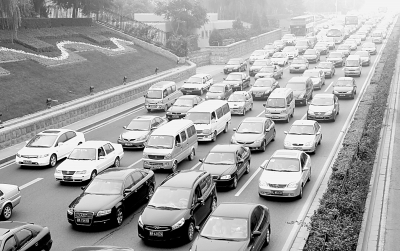 10月9日上午10點(diǎn),北京西二環(huán)依然車速緩慢,擁堵在北京已成常態(tài)。本報(bào)記者趙洪波攝
