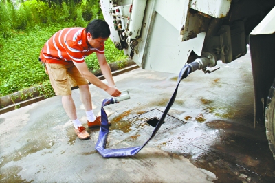 工人師傅說,改裝后,每輛車可以排出至少70%的水分。今后轉運垃圾時,就近找個下水道,可將垃圾擠干后再運,不僅解決隨地“大小便”問題,還能增加運輸量,一舉多得。